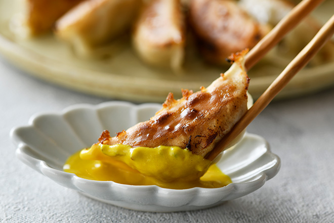 ハンバーガーやホットドッグにイエローマスタードが合うなら、餃子にも合うはずだと思ってやってみたら、実際にとてもおいしかったです。イエローマスタードにディップする気持ちで、たっぷりつけて食べてみてください。肉餃子にも野菜餃子にも相性が良いと思います。