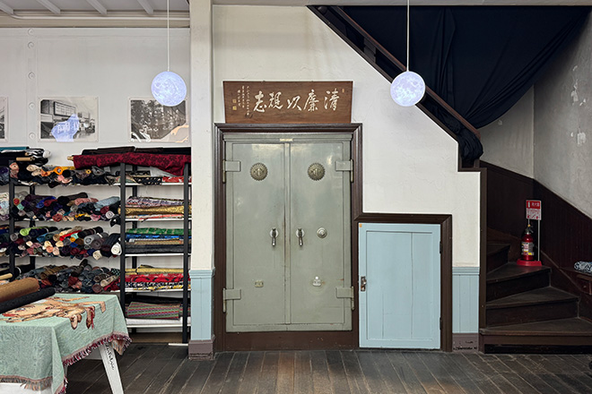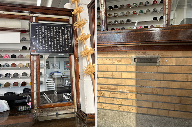 入口の中は、郵便局時代のカウンターがそのまま遺されていました。カウンター下の壁には、手紙を差し入れるための郵便受けが付いています。物珍しげに眺めていると、お店の方が奥から出てきてくれ、少しお話を伺うことができました。日本の伝統生地でベースボールキャップを制作するヘッドウェアブランド「W@nder Fabric(ワンダーファブリック)」を経営する今井俊之さんです。