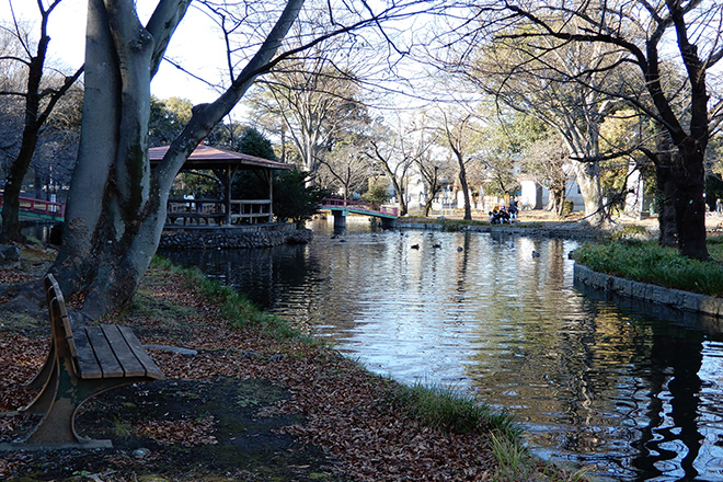 賀美橋の下には、元小山川のせせらぎを利用した「若泉公園」があります。私が訪れたのは冬でしたが、両岸には桜が植えられており、春にはライトアップされるそうです。
