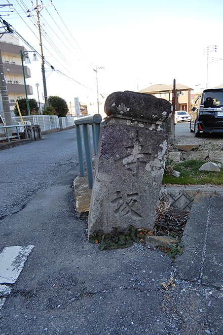 賀美橋の親柱。屋根の形の下にもタイルが貼ってあったような痕跡がある
